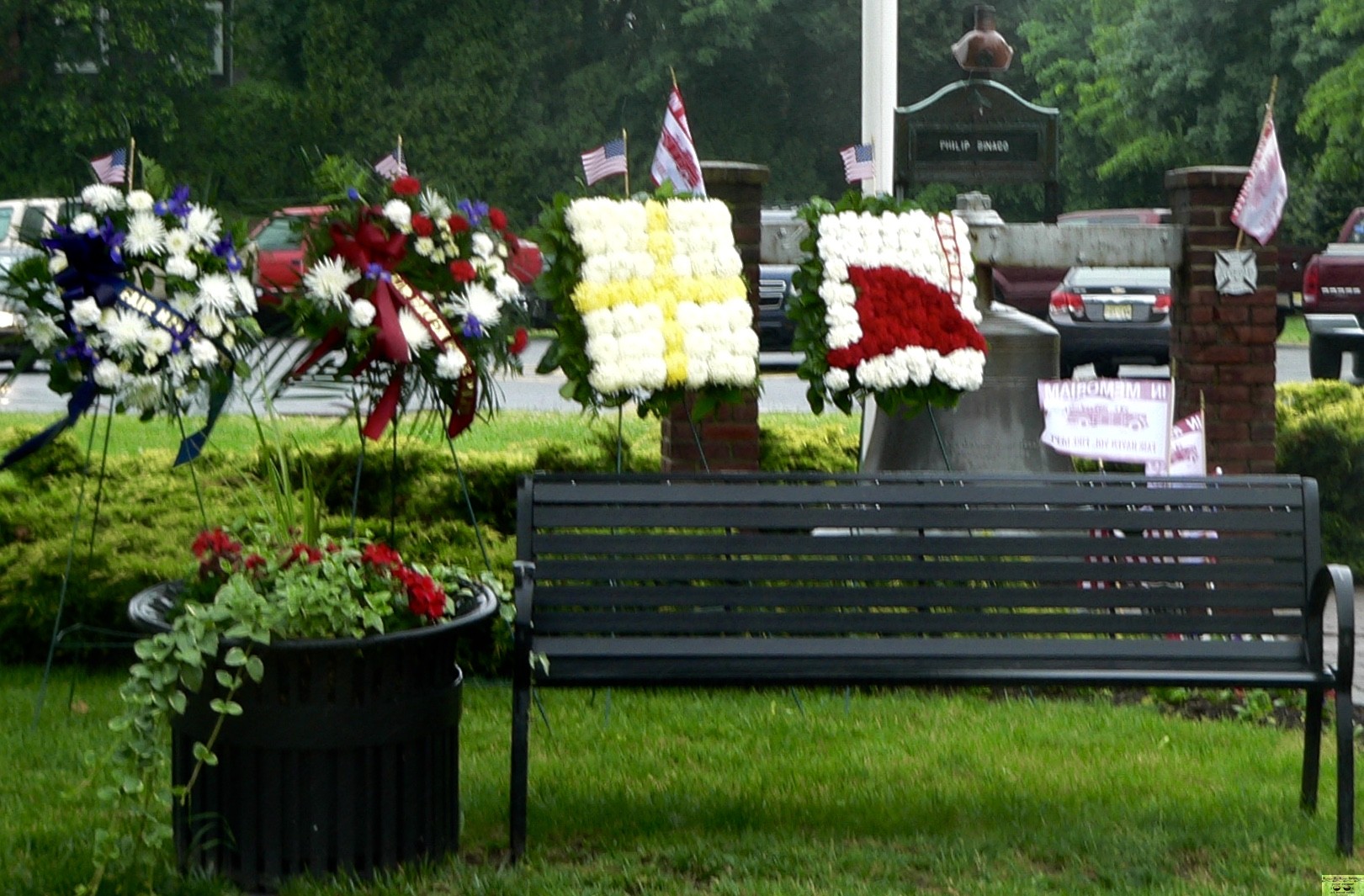 Rumson-Fair Haven Retrospect could not make the ceremony at Knollwood School on Monday, but signs of remembrance remained all over the borough on the drizzly day.