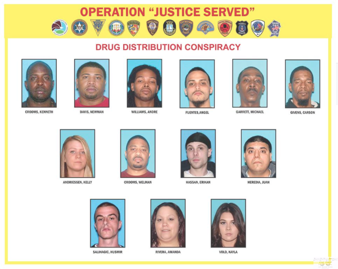 A five-month undercover drug distribution investigation conducted by federal, state, county and local law enforcement agencies dubbed Operation Justice Served culminated in the arrest of 42 people within the past month, Monmouth County Prosecutor Christopher J. Gramiccioni announced on Thursday.