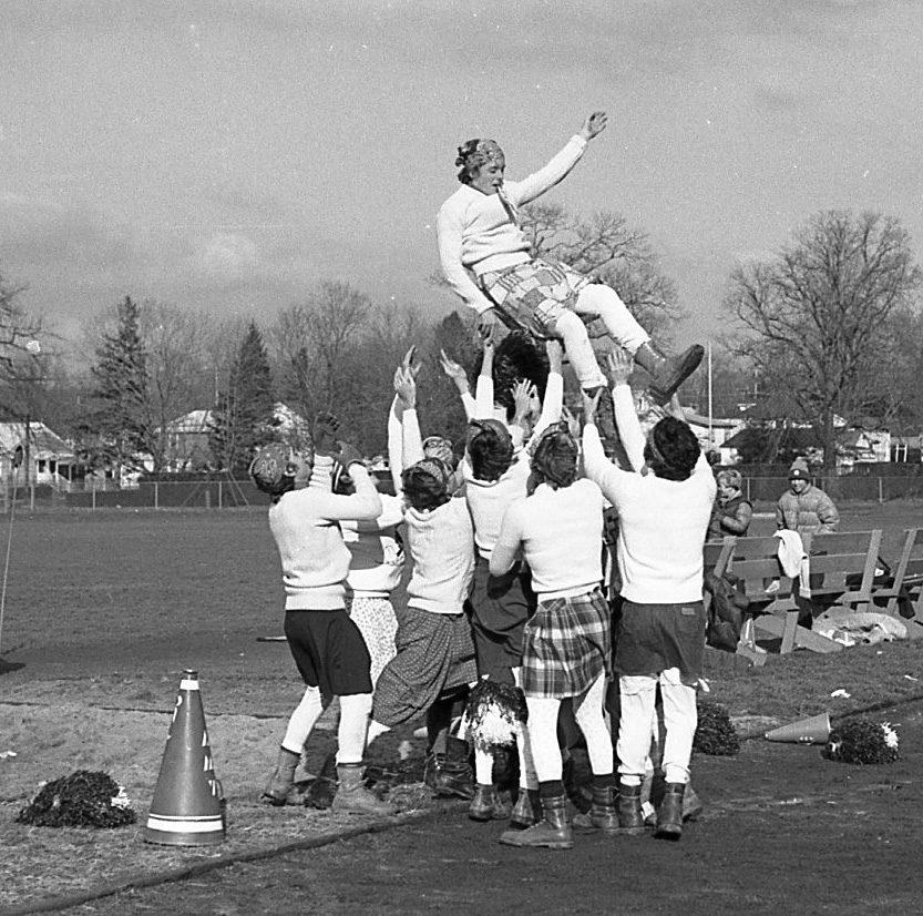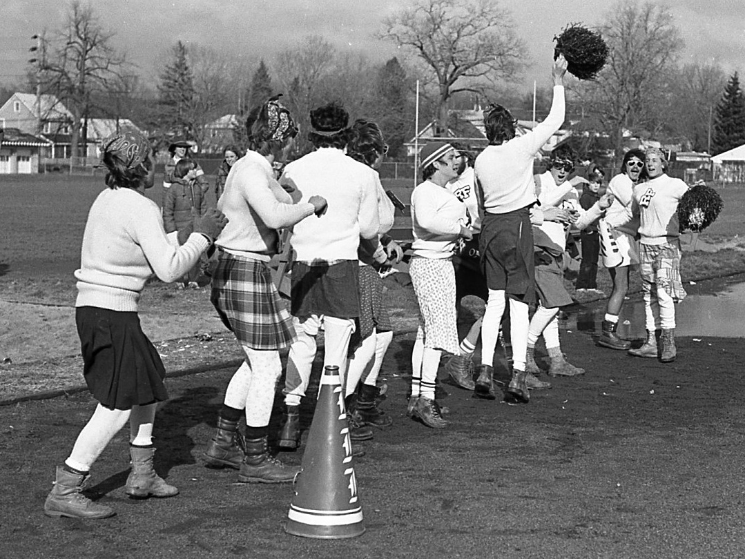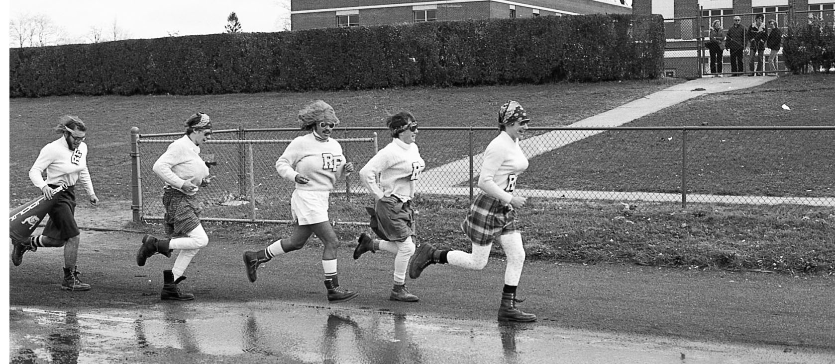 The moment doesn’t get much more classic than this one — some young guys of the RFH Class of ’78 getting all dressed up with somewhere to go, like the RFH football field, just to cheer the girls on in style at a powder puff football game with some feminine wile, gusto and guts to boot!