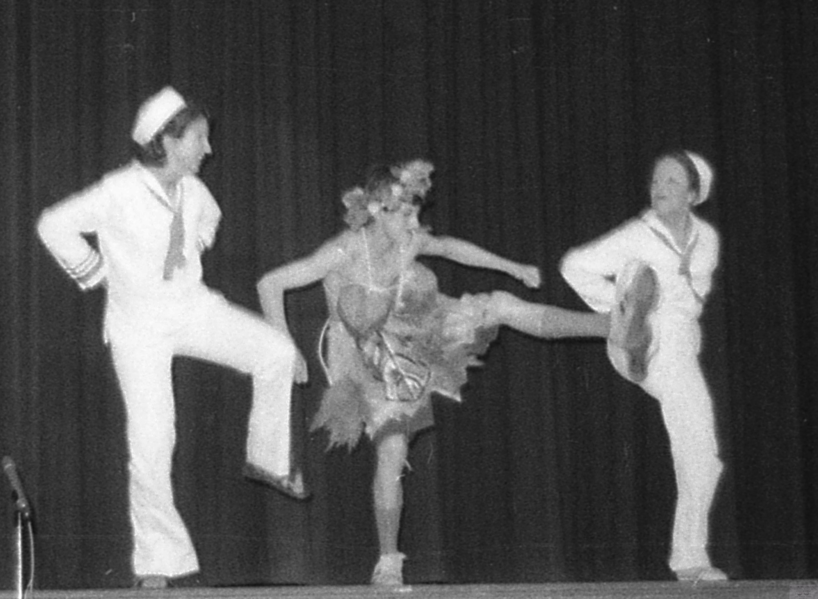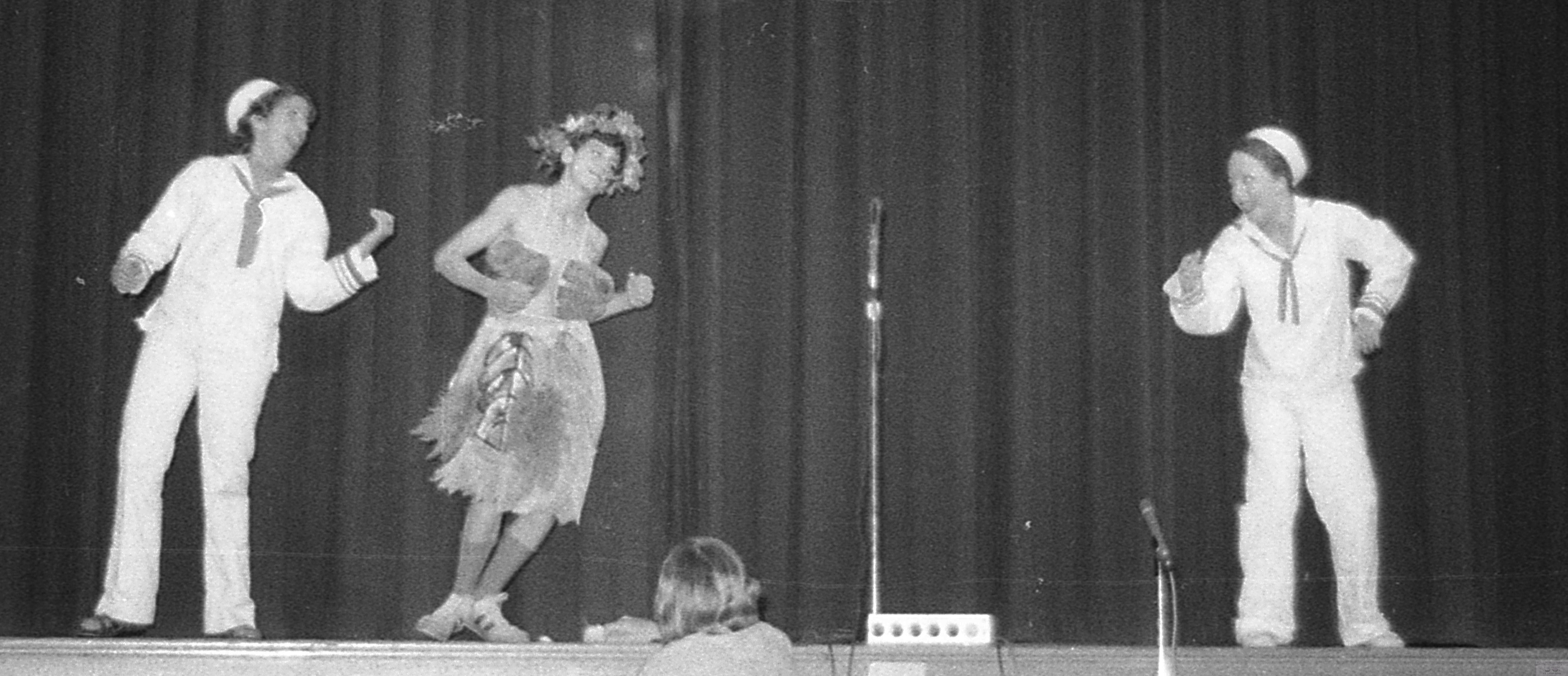 RFH Freshman Follies 1975 rendition of Honey Bun with Stephanie DeSesa, Ward Tietz and Elaine Van Develde Photo/George Day